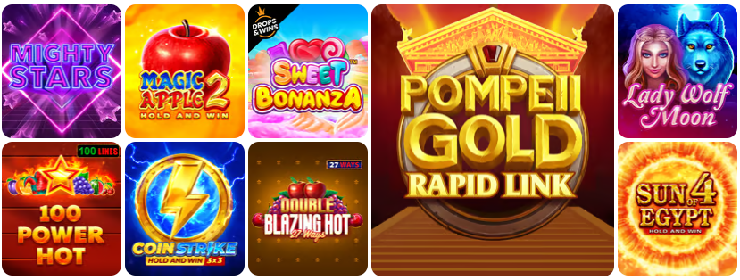 Rich Pigges Bonus Combo (NetGame), Древняя стрижка и Win 3x3 (Playson), Grab More Gold! (3 OAKS), Fruity Diamonds Hold & Спин (Barbara Bang), Gates of Olympus (Pragmatic Play), Mestery Wheel 27 Eternal Hot (Amusnet), Wildfire Fruits (Spinomenal), Joker Coin 8 (Onlyplay), Lady Wolf Moon (BGaming), Pirate's Map (Platipus) |